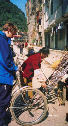 Zuckerrohkauf als Radelproviant in Yangshou