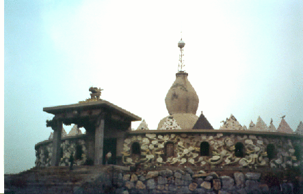 Was ein wenig aussieht wie ein Wasserreservoir oder eine Sendeanlage entpuppte sich beim näheren Hinsehen als moderne Stupa. Knut hatte das bei einer früheren Tour ausfindig gemacht und uns - sich der kommenden Überraschung sicher - mit großem Vergnügen hin geführt. |