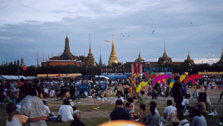 Buntes Treiben auf der Festwiese vor dem Palast zum Geburtstag der Königin. Drei Tage lang Drachensteigen, Schlangenbeschwörungen und sonstige Zaubereien, Freibrathähnchen (dafür heißt es aber mehrere Hundert Meter Schlange stehen) sowie alle Arten von bezahlbarer Straßen-Verköstigung, Bühnenshows und fünf Freiluftkinos, bzw. -discos (!). Und das alles vor der beeindruckenden Kulisse der Palastanlagen - ein bisschen Brot und Spiele, aber für die Leute ein wirkliches Fest. |