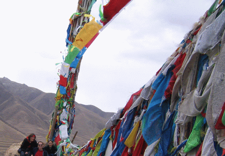 Auf das der Wind die guten Wünsche mit sich nehme... . Gebetsfahnen am zerstörten Nonnenkloster. Bild von Doro Heckelsmüller und Otto Knaur |
