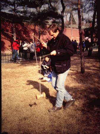 Als Frieder das Bambus-Diabolo zum Heulen brachte, warf und wieder auffing durfte er sich über unerwarteten Szenenapplaus vorbeigehender Chinesen freuen. |