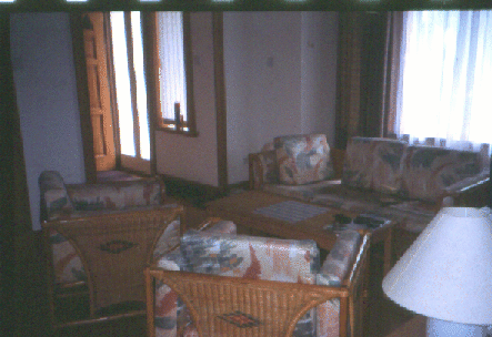 Teil des Wohnzimmers und Eingang unserer Wohnung. Die Möbel waren schon drin, gefallen uns aber ganz gut, zumindest ist es gemütlich.