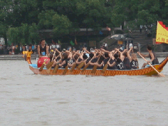 mit dem Einladungsturnier für große Drachenboote (20 Paddler) aus ganz China (dieses Jahr u.a. Shanghai, Hangzhou, Guangzhou, Peking, Lijiang). Ein wirklich sehenswertes Festival mit breitem