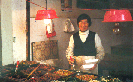 Typische Garküche mit diversen Gerichten zur Auswahl auf einem Markt in unserem Bezirk