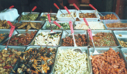 Speiseauswahl in einer Garküche in der Altstadt