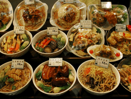 Typisches, “benutzerfreundliches” Suppenangebot in einer sogenannten “Foodjunction”. Man zeigt auf die gewünschte Speise, die dann frisch zubreitet wird. |
