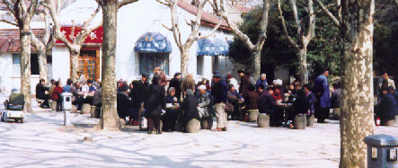 Traditionelle chinesische Freizeitkultur: Majong- und Kartenspieler im Zhongshan-Park. Nach einem jahrelangen Verbot im Kampf gegen Glücksspiel sind diese öffentlichen “Spielplätze” heute wieder populär wie eh und je und wichtige Treffpunkte der älteren Generation. |