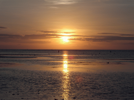 Bali ist berühmt für seine Sonnenuntergänge - nur einer von vielen Traumblicken in unserer kurzen Zeit: Die Idee der Flitterwochen, die wir ja ursprünglich hatten, und die die kurzfristige Shanghai-Stelle dereinst zu einem Kurzurlaub in Dubai wandelte, wäre schon SEHR richtig gewesen. |