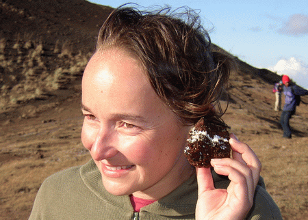 Knisternde Spannung: Selbst direkt an der Oberfäche des Vulkans findet man warme, wie Brause knisternde Steine! |