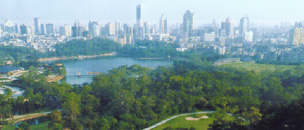Die Skyline von Guangzhou/Kanton von einem der Parkhügel aus gesehen. Mit 6.5 Millionen Einwohnern ist auch Guangzhou eine jener boomenden Städte, deren Entwicklungsstand der Durchschnittseuropäer (so auch wir) in China in keiner Weise erwartet - allerdings hat Guangzhou auch noch wirklich, wirklich urige Gassen. |