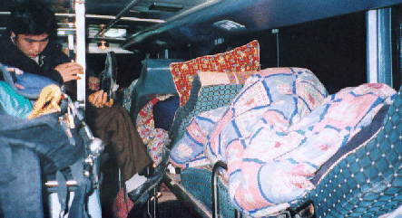 Für 14 Stunden unser “Heim”: Ein Sleeperbus. Trotz enger Liege und einer Mischung aus Rauch und Radikallüftung ging es uns besser als erwartet und wir kamen leidlich erholt in Hongkong an. |
