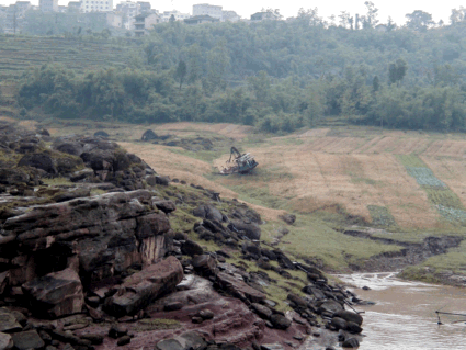 Da hat doch jemand sein Schiff vergessen... - nicht nur landschaftlich überraschende Impressionen am Yangtze. |