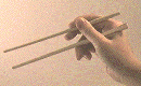 aus Soßen zu benutzen oder die Fertigkeit, größere Stücke und lange Nudeln mit sich kreuzenden Stäbchen in mundgerechter Größe “abzuzwacken”.