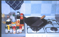 Ergebnis unserer Wokkünste sind vorzugsweise Gemüsemischungen mit oder ohne Sojasauce, als Beilagen Reis (für die ebenfalls vorhandene Mikrowelle