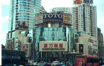Dann erreichen wir den geschäftigen Platz Wu Jia Xiang. Hier gibt es ein mehrstöckiges Basargebäude, große Restaurants, einen